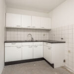De woonkamer is royaal en licht, met voldoende ruimte voor een comfortabele zit- en eethoek. De open keuken is voorzien van een eenvoudig keukenblok en biedt een goede basis voor modernisering.