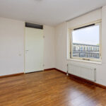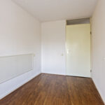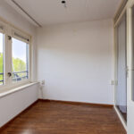 De ruime slaapkamer aan de galerijzijde is netjes afgewerkt met laminaatvloer en spuitwerk wanden. De tweede kamer is ingericht als praktische werkruimte, ideaal voor thuiswerken, studeren of als hobbykamer.