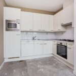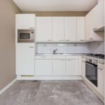 De woonkamer is bijzonder licht te noemen door de mooie glaspartijen en kijkt heerlijk weg. Tezamen met de keuken is dit een hele fijne leefruimte. De keuken is voorzien van een koelkast met vriesvak, vaatwasser, oven, magnetron, gaskookplaat, afzuigkap en bergruimte. Via de woonkamer is middels openslaande deuren het grote balkon te bereiken.