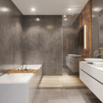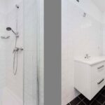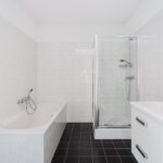 De badkamer is voorzien van een ligbad, separate douchecabine, wastafelmeubel en is grotendeels betegeld. Aan de overzijde van de badkamer is de witgoedruimte met opstelling CV (2017 / eigendom), WTW-installatie en is ideaal als voorraad -/ bergkast. Het toilet bevindt zich ernaast en is voorzien van een fonteintje.