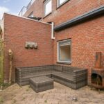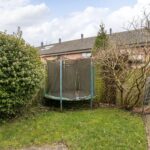 De achtertuin, gelegen op het zonnige zuiden, is een waar paradijs. Met een houten berging van circa 8m² en een handige achterom, biedt de tuin alles wat je nodig hebt. Geniet van het groene grasveld en het uitnodigende terras, perfect voor een gezellige eettafel. Omringd door weelderige druivenstruiken en bloeiende rozenstruiken, is dit een ideale plek om te ontspannen en te genieten van de buitenlucht.