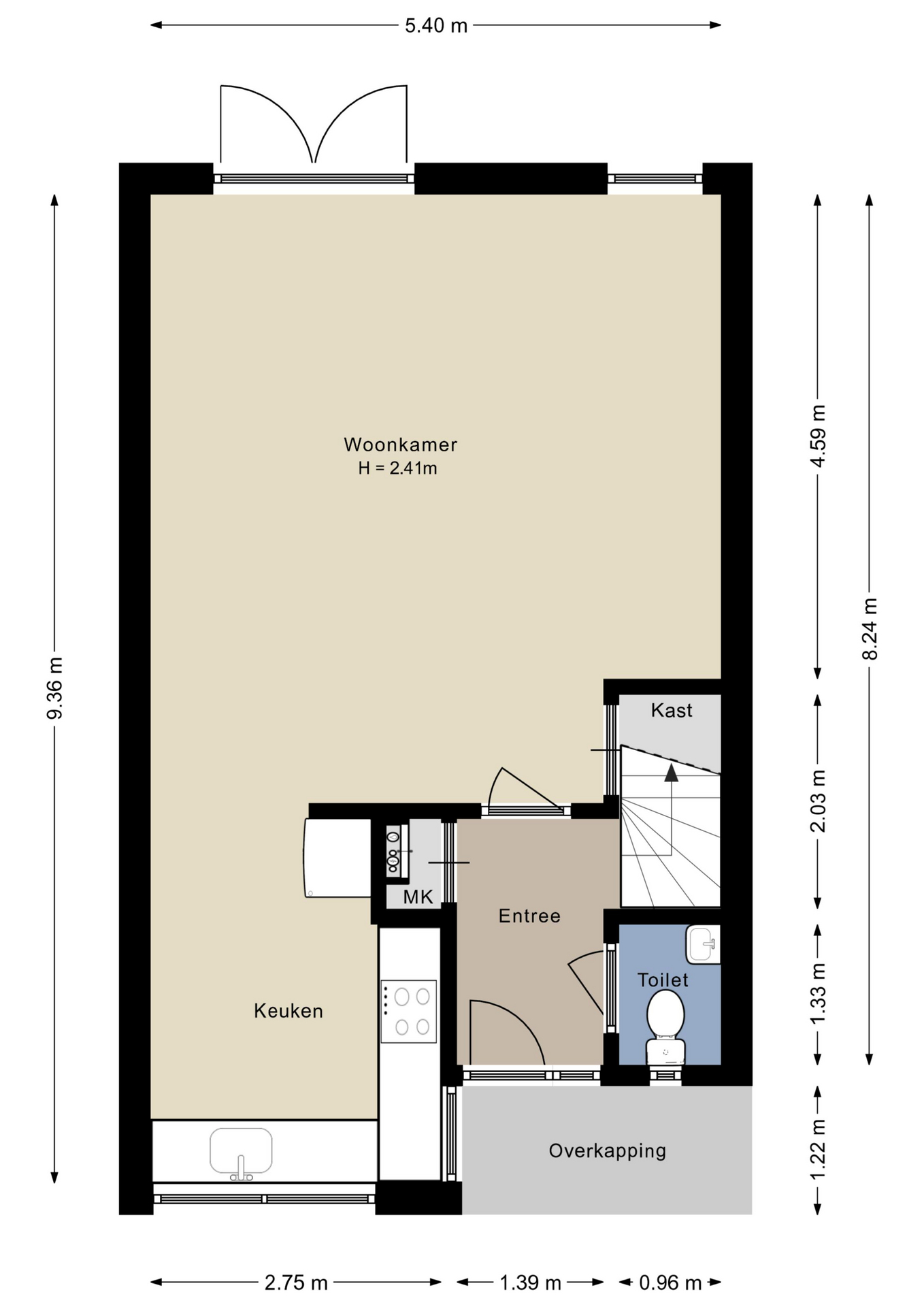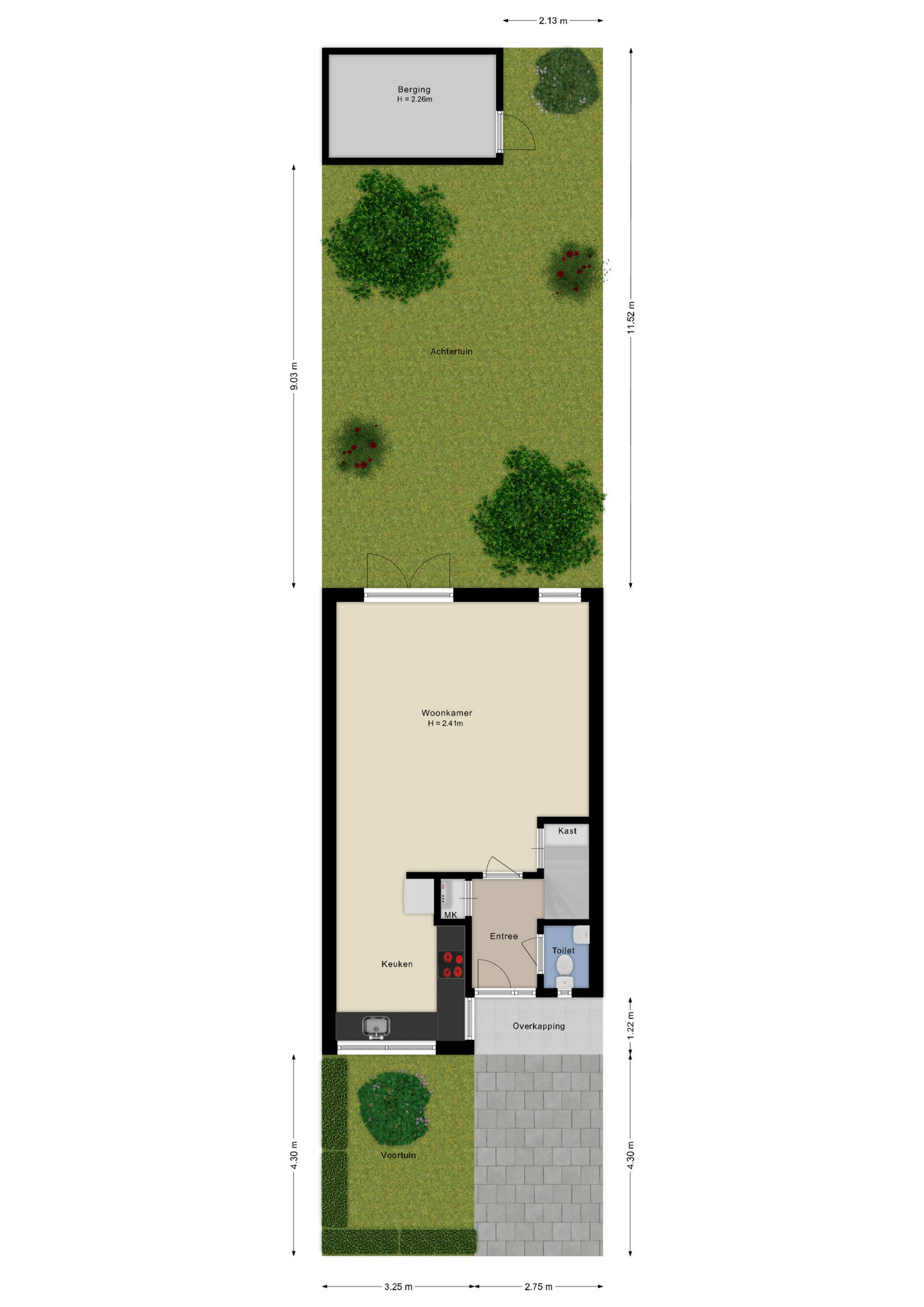 Stap binnen in een ruime hal die je verwelkomt met praktische gemakken zoals een meterkast, trapkast, garderobe en een stijlvol toilet. Vanuit hier bereik je het woongedeelte. De keuken, gelegen aan de voorzijde, is uitgerust met moderne inbouwapparatuur en vormt een perfecte plek voor culinaire avonturen. De tuingerichte woonkamer is verrassend ruim en nodigt uit tot ontspanning, met directe toegang tot de zonnige tuin op het zuiden. De gehele begane grond straalt luxe uit dankzij de tegelvloer met comfortabele vloerverwarming.