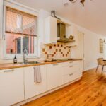De ruime zithoek is aan de achterzijde geplaatst, hier zijn verschillende mogelijkheden om het zitgedeelte in te richten. Ook middels de grote ramen met roedeverdeling voelt de woning knus aan. In de woonkamer is nog een trapkast geplaatst voor voldoende opbergruimte. Via de openstaande deuren kom je in de diepe achtertuin gelegen op het oosten. De begane grond is voorzien van een laminaatvloer met vloerverwarming en daarbij een nette wandafwerking.