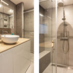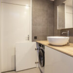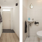 Je komt binnen in de hal met toilet en fonteintje. De badkamer is vernieuwd en voelt heerlijk fris en modern, met een ruime inloopdouche, een stijlvol wastafelmeubel en de aansluitingen voor de wasmachine en droger. Ook vind je hier een praktische berging met de opstelling van de CV-combiketel.