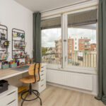 De woonkamer is een plek waar je meteen tot rust komt. Grote ramen zorgen voor een zee aan licht en via de deur loop je zo het balkon op, ideaal voor een kop koffie in de ochtendzon of een borrel aan het einde van de dag. De voormalige slaapkamer naast de woonkamer is erbij getrokken, waardoor er een royale leefruimte is ontstaan. Heb je toch liever een extra kamer? Dan is dat eenvoudig terug te brengen.