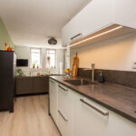 Grenzend aan de woonkamer vind je de open keuken, compleet met inbouwapparatuur zoals een inductiekookplaat, vaatwasser, combi-oven en koelkast met vriesvak. Koken wordt hier niet alleen makkelijk, maar ook gezellig. Verder zijn er twee fijne slaapkamers, beide met een warme laminaatvloer.