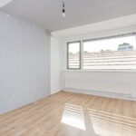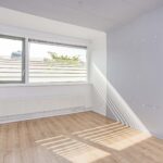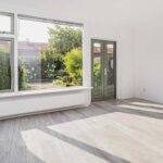 - Ruime, lichte woonkamer met hoog plafond en openslaande deuren.