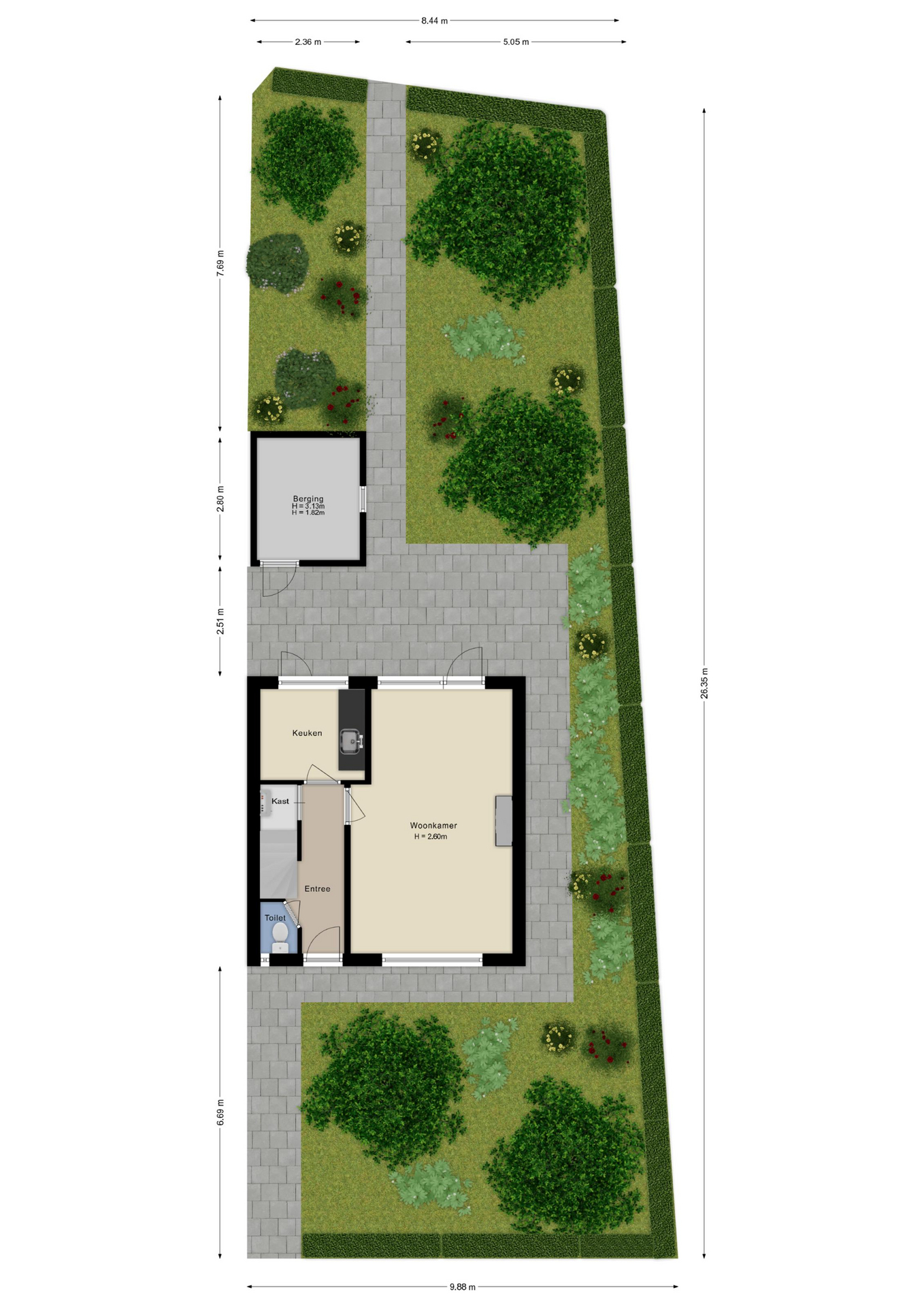 Wat deze woning echt bijzonder maakt, is de diepe achtertuin die gelegen is op het oosten. Dankzij de achterom kun je makkelijk de tuin in en uit, en de stenen berging biedt extra opbergruimte voor bijvoorbeeld tuinaccessoires of fietsen. Ook de voortuin zorgt voor een verzorgde uitstraling van de woning.