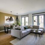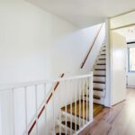 De ruime woonkamer met eikenhouten vloer is flexibel in te richten met bijvoorbeeld een gezellige zit- en eethoek. Extra handig is de trapkast, ideaal voor de nodige opbergruimte. Ook hier zorgen dubbele tuindeuren voor een directe verbinding met het balkon, waar je uitkijkt op de groene omgeving en het water. 's Ochtends geniet je hier heerlijk van de eerste zonnestralen.