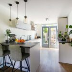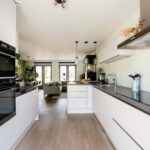 Via de entree kom je in een ruime hal met meterkast, modern toilet en de trap naar de eerste verdieping. Aan de voorzijde van het huis vind je de keuken, die in 2018 vernieuwd is en beschikt over hoogwaardige inbouwapparatuur. Denk aan een inductiekookplaat, vaatwasser, koel/vriescombinatie, Quooker, oven, combi-oven/stoomoven en een afzuigkap. En vergeet vooral niet de royale werk- en opbergruimte! Nog leuker: de keuken heeft dubbele openslaande deuren naar de tuin en een fijne bar om aan te zitten.