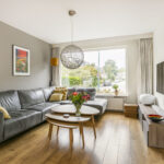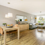 De lichte woonkamer biedt volop ruimte voor een gezellige zithoek en een grote eettafel waar lange avonden met familie en vrienden vanzelf ontstaan. De open keuken aan de achterzijde is overzichtelijk en praktisch ingericht – een fijne plek om samen te koken terwijl je in contact blijft met de rest van het gezin.