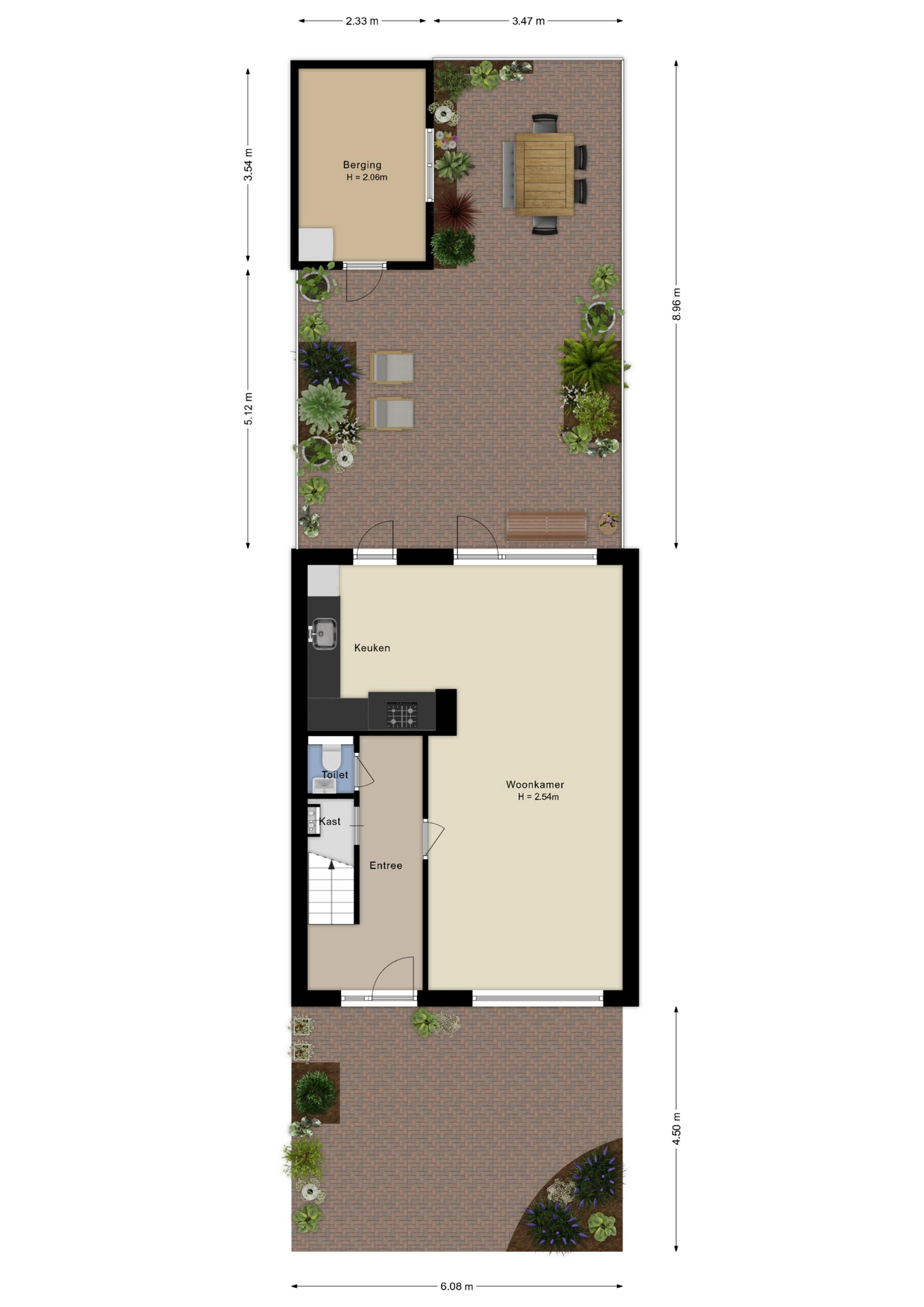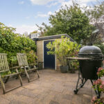 Via de woonkamer stap je zo de zonnige achtertuin in: gelegen op het zuidoosten, met voldoende plek voor een loungeset en eettafel. Achterin de tuin vind je een praktische berging, ideaal voor fietsen en tuinspullen.