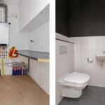 Hal met videofoon, meterkast en modern afgewerkte toiletruimte met hangend closet en fonteintje. Tevens is hier de grote inpandige berging toegankelijk, die is voorzien van de CV-opstelling, wasmachine- en drogeraansluiting, mechanische ventilatie-unit en bergruimte.