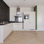 De living loopt over in de open keuken, die is voorzien van een groot en modern keukenblok met granieten aanrechtblad en Siemens inbouwapparatuur, te weten; koel-/vriescombinatie, gaskookplaat, combimagnetron, RVS-recirculatie afzuigkap en een vaatwasser.