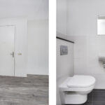 Hal met videofoon, meterkast en modern afgewerkte toiletruimte met hangend closet en fonteintje. Tevens is hier de inpandige berging toegankelijk, die is voorzien van de CV-opstelling, wasmachine- en drogeraansluiting, mechanische ventilatie-unit en bergruimte.