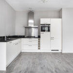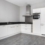De living staat in directe verbinding met de open keuken, die is voorzien van een modern keukenblok in hoekopstelling met granieten aanrechtblad en Siemens inbouwapparatuur, te weten; koel-/vriescombinatie, gaskookplaat, combimagnetron, RVS-recirculatie afzuigkap en vaatwasser.