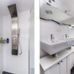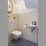Overloop, separaat toilet, eerste slaapkamer aan de voorzijde, tweede slaapkamer aan de achterzijde met drie inbouwkasten, derde (was)kamer aan de voorzijde van het woonhuis met twee inbouwkasten. De badkamer bevindt zich aan de achterzijde van het woonhuis en deze is voorzien van een flinke douchegelegenheid met twee wastafels en een groot bad.