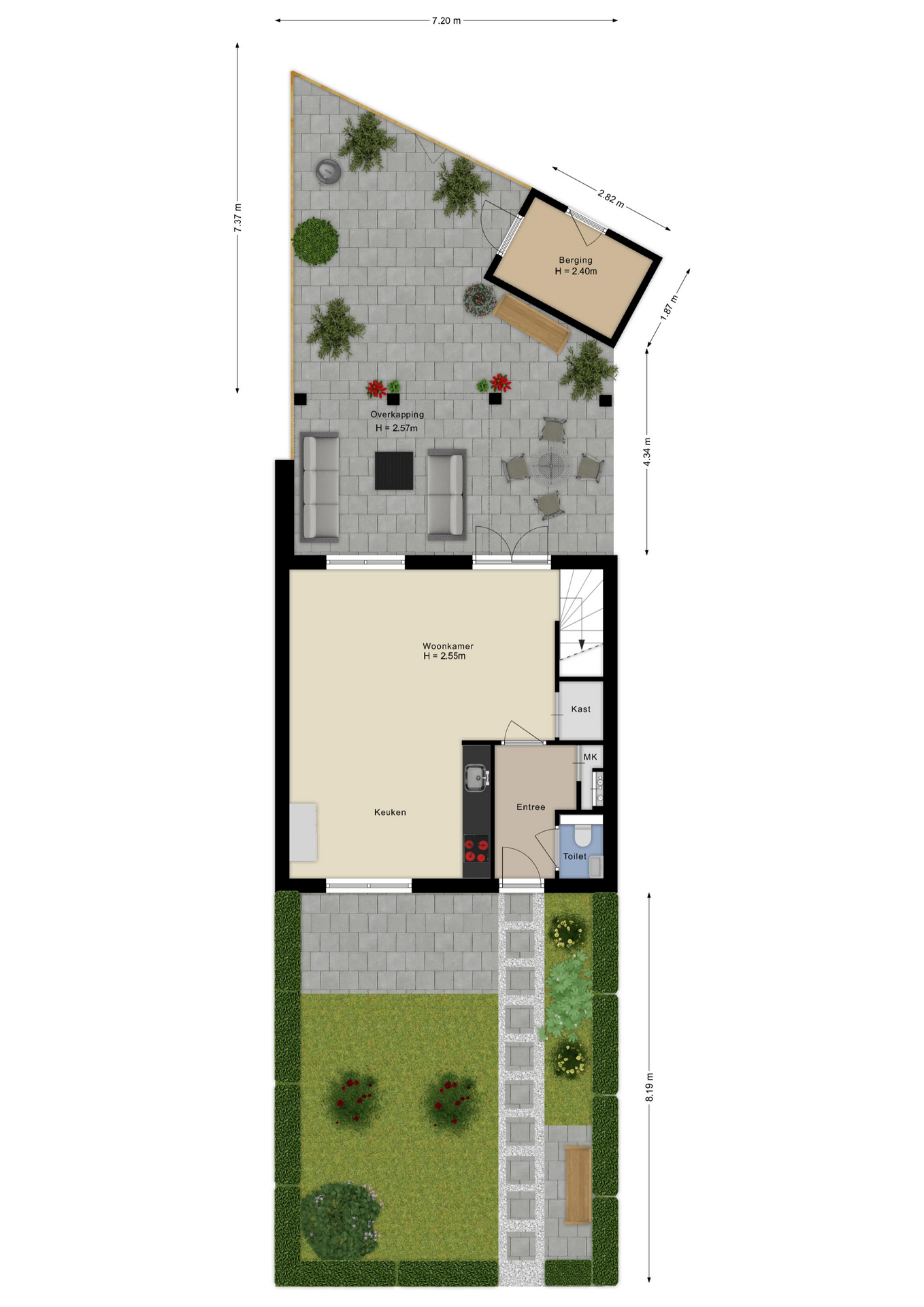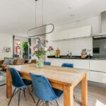 Verzorgd aangelegde voortuin met veel groen, entree, hal met garderobe, meterkast, toiletruimte (2020), toegangsdeur naar de woonkamer en keuken. Aan de voorzijde van de woning is de moderne open keuken gesitueerd met uitzicht op de voortuin. De keuken is voorzien van diverse Siemens inbouwapparatuur zoals een vaatwasser, combi-oven, inductie kookplaat, RVS afzuigschouw, een mooi composiet werkblad en koelkast. De tuingerichte woonkamer, gesitueerd aan de achterzijde van de woning, is voorzien van een praktische trapkast met wasmachine/droger opstelplaats en een grote raampartij met loopdeur naar de tuin. De gehele begane grond is voorzien van een fraaie eikenhouten vloer met white wash.