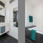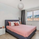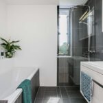 Overloop met toegang tot twee slaapkamers aan de achterzijde en een derde slaapkamer aan de voorzijde, deze kamer heeft een leuke erker met uitzicht op het water en het groen. Hier tref je ook een wasmachine aansluiting. De moderne badkamer is voorzien van een inloopdouche én ligbad, een wastafelmeubel met dubbele kraan en een raam voor natuurlijke ventilatie en daglicht. Er is tevens mechanische ventilatie aanwezig. Deze verdieping is volledig voorzien van een nette laminaatvloer. Via de overloop bereik je tevens het luik met een vlizotrap naar de bergvliering.