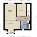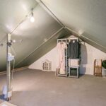 Vlizotrap met toegang tot de praktische bergvliering met een hoogte van 2.20 meter. Hier heb je veel bergruimte, tevens bestaat de mogelijkheid om een vaste trap en dakramen te plaatsen zodat deze ruimte als extra (slaap)kamer kan worden gebruikt.