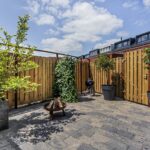 De heerlijke achtertuin, gelegen op het noordwesten, is voorzien van een nieuwe schutting, een houten tuinschuur/berging met elektra, buitenkraan, buiten stopcontacten, een achterom en een heerlijke overkapping van het terras aan het huis. Dankzij de goede ligging pakt deze tuin gedurende de gehele middag en avond volop zon. Op het gemeenschappelijke binnenterrein is een privé parkeerplaats. De ruime voortuin is gelegen op het zuidoosten en biedt naast een fraai uitzicht op de singel, een heerlijk ochtendzonnetje. De ideale plek voor een kop koffie en/of ontbijt in de ochtendzon.