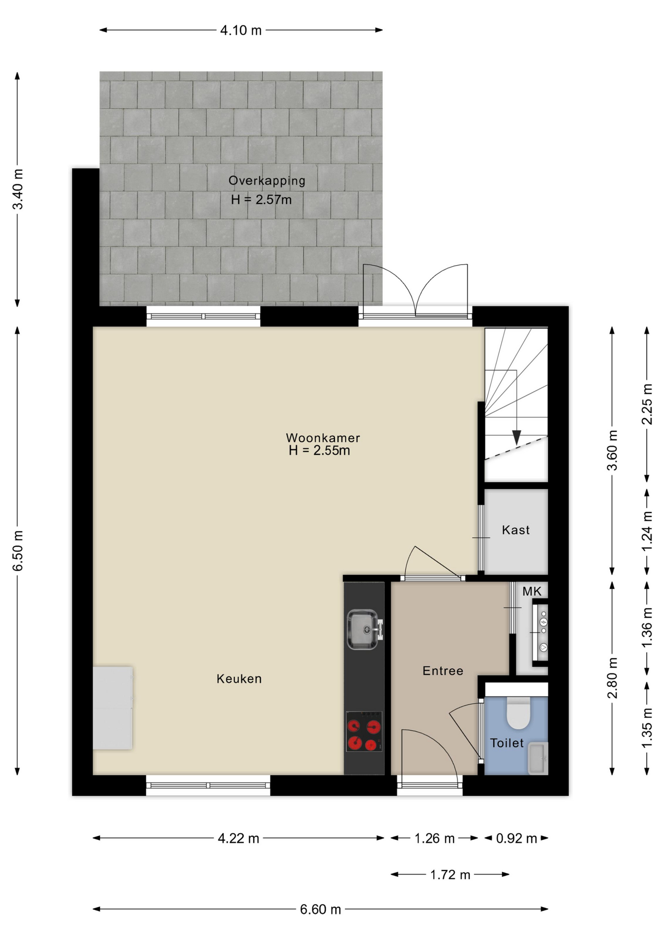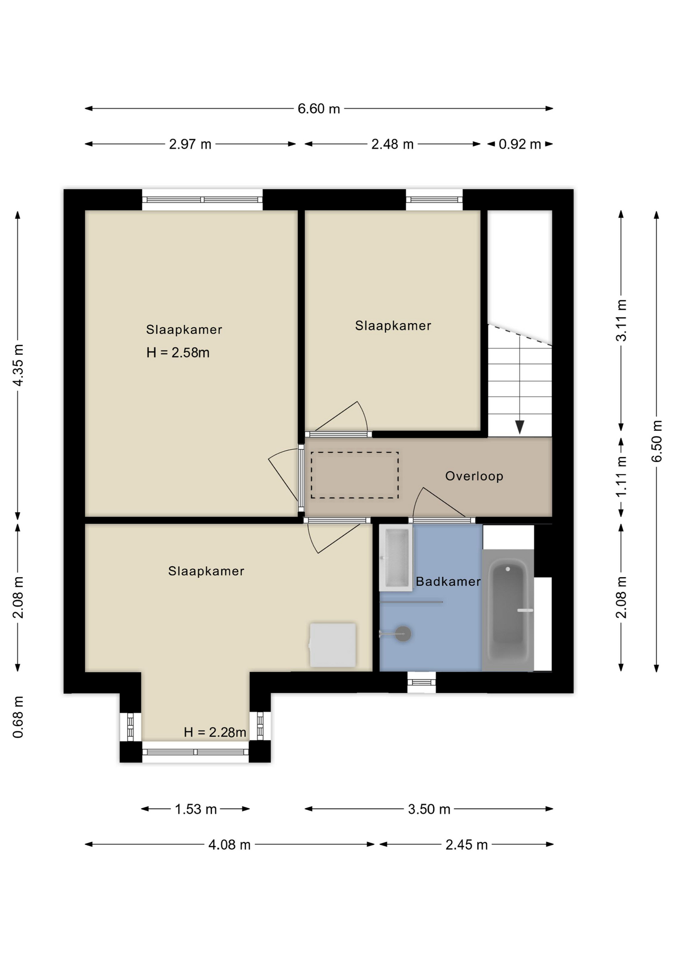 - Breedtemaat 6.60 meter wat uniek is in deze omgeving;