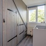 Hal met PVC-vloer en vloerverwarming, glad gestucte wanden -en plafond, luxe toiletruimte met hangend closet, meterkast met nieuwe en uitgebreide groepenkast, garderobe en deur naar de woonkamer.