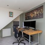 De ruime zolderkamer ligt aan de voorzijde, heeft een afmeting van circa 9m2 en is voorzien van een laminaatvloer, glad gestucte wanden -en plafond met inbouwverlichting, vaste kasten en bergruimte achter het knieschot. Hier is in 2016 een dakkapel geplaatst, waardoor de ruimte heerlijk licht is en er tevens vrij uitzicht is op de fijne woonomgeving.
