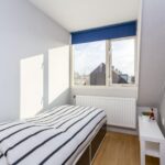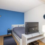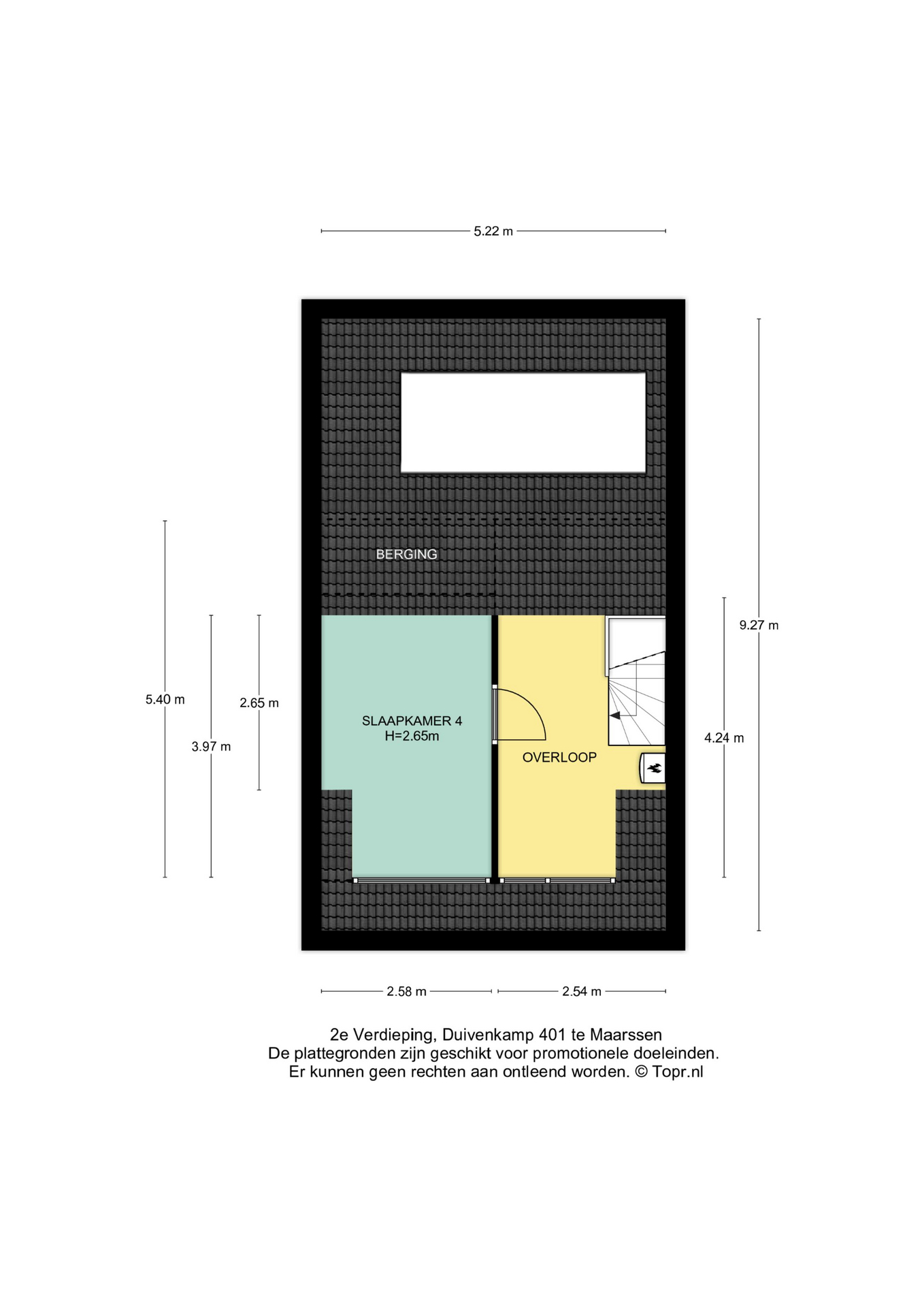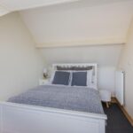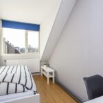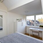De zolderkamer is ruim van afmeting en is voorzien van een dakkapel, laminaatvloer, gestucte wanden en bergruimte achter de knieschotten.