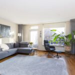 De tuingerichte woonkamer is ruim van afmeting en heerlijk licht door de grote raampartij en voorzien van een eikenhouten parketvloer, tuindeur en trapopgang naar de 1e verdieping.