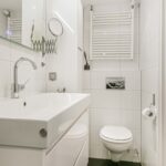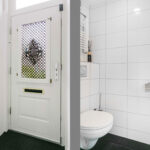 Grenzend aan de achterzijde van de keuken bevindt zich de modern afgewerkte en geheel betegelde toiletruimte voorzien van een hangend closet, wastafelmeubel en designradiator.