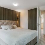 De woning beschikt over twee (voorheen drie) ruim bemeten slaapkamers, die beide zijn afgewerkt met een visgraat vinylvloer en glad gestucte wanden -en plafond. De slaapkamer aan de voorzijde is daarnaast voorzien van een dakkapel, grote, ingebouwde kledingkastenwand en bergkasten. Van de twee standaard slaapkamers aan de achterzijde hebben de verkopers één grote en stijlvolle master bedroom gemaakt, die is voorzien van openslaande deuren naar het ruime dakterras.