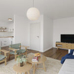 Het beschikt over een keukenblok, lichte woonkamer, badkamer en twee slaapkamers, een ideale woonruimte voor starters!