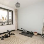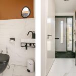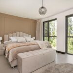 De trap omhoog leidt naar drie slaapkamers die zich perfect lenen voor een gezin met kinderen of als gastenverblijf. De luxe badkamer hier is uitgerust met een inloopdouche, een wastafel en een tweede toilet, allemaal in een eigentijdse stijl.