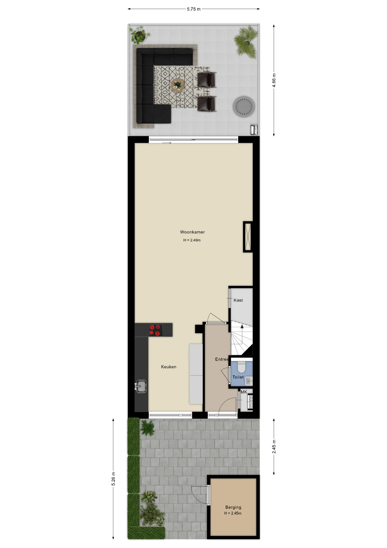 De privƩ oase achter het huis, met tuin op het westen, wacht op tuinfeesten en relaxte zomeravonden. De berging in de voortuin, vervaardigd uit hout, biedt plaats voor fietsen en tuingerei.