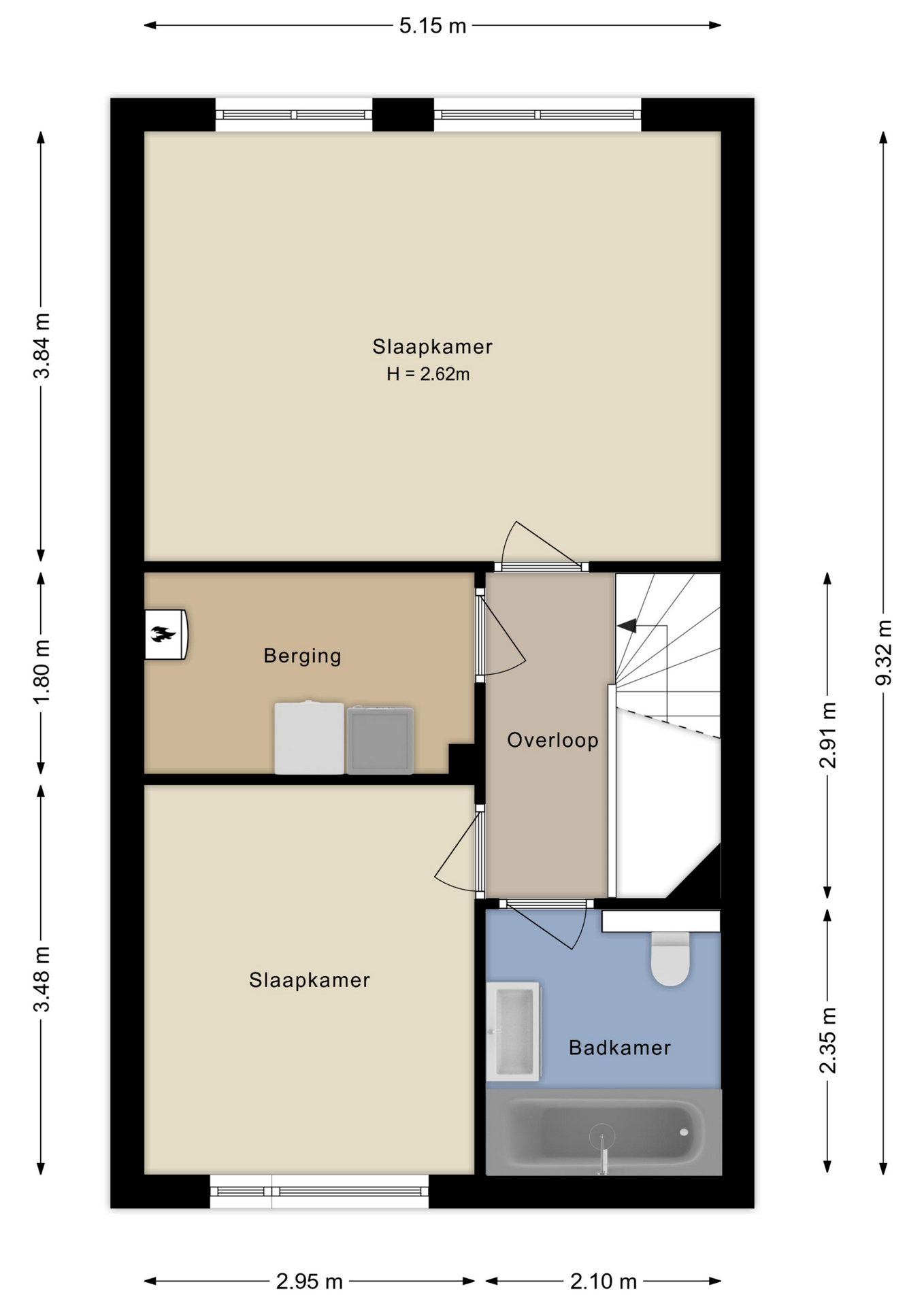Nog twee slaapkamers vind je hier, samen met een tweede badkamer die uitnodigt tot ontspannen in het ligbad. Ook hier is een toilet en wastafel voor het comfort dat past bij deze etage.