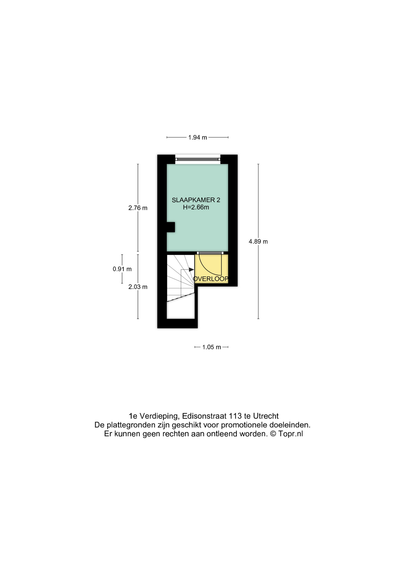 Bereikbaar met een vaste trap vanuit de gang met op deze woonlaag de overloop en één slaapkamer.