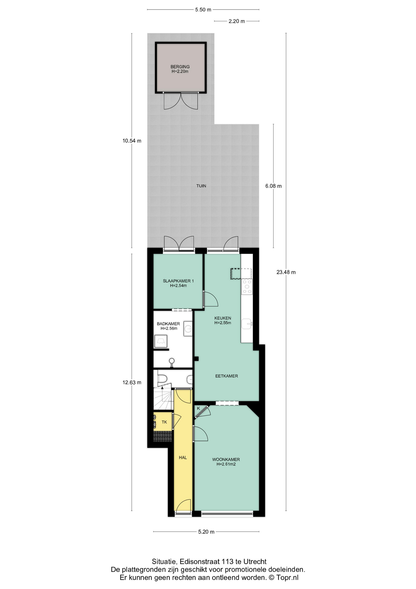 - Diepe achtertuin, deels ruim 10 meter en deels 6 meter diep, op het oosten;