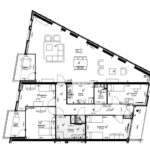 Entree, hal met meterkast. Riante woonkamer van 69,5 m2 met prachtig lichtinval door de vele Franse balkons. Vanuit de woonkamer is ook het zonnige balkon bereikbaar (zuidwesten). Halfopen keuken in hoekopstelling, voorzien van inbouwapparatuur zoals een gaskookplaat, afzuigkap, koelkast, vaatwasser en combi oven. Vier ruime slaapkamers, waarvan één kamer toegang heeft tot het 2e balkon (zuidwesten). Geheel betegelde badkamer met douche en dubbele wastafel. Separaat toilet met fontein. In de gang bevindt zich een handige berging met opstelplaats cv-ketel en aansluiting voor de wasmachine aansluiting.