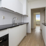 Hal/entree met meterkast en toegang tot alle vertrekken. Ruime en, vanwege de grote raampartijen, lichte doorzonwoonkamer van circa 35 m2. Twee ruime slaapkamers van resp. 12 en 9 m2. Keurige badkamer met inloopdouche, wastafelmeubel en hangend toilet. Dichte keuken, voorzien van een moderne keukeninrichting voorzien van inductiekookplaat, afzuigkap, koelkast, vriezer en vaatwasser. Vanuit de keuken bereik je het zonnige balkon op het zuidwesten.
