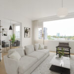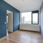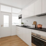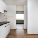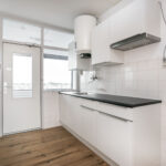 Via de gedeelde hal bereik je de entree van het appartement. De ruime entree biedt toegang tot alle vertrekken. De lichte woonkamer heeft grote raampartijen waardoor er veel daglicht binnenvalt en je hebt hier een vrij uitzicht over de omgeving. De dichte keuken is netjes en functioneel ingericht en biedt voldoende ruimte voor een eettafel of extra kast.