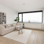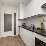Hal/entree met meterkast en toegang tot alle vertrekken. Ruime en, vanwege de grote raampartijen, lichte doorzonwoonkamer van circa 35 m2. Twee ruime slaapkamers van resp. 12 en 10 m2. Keurige badkamer met inloopdouche, wastafelmeubel en hangend toilet. Dichte keuken, voorzien van een moderne keukeninrichting met inductiekookplaat, afzuigkap, koel-vriescombinatie en vaatwasser. Vanuit de keuken bereik je het zonnige balkon op het zuidwesten.