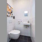 Via de overdekte entree betreed je het appartement in de lichte hal. De hal is voorzien van een berg- en meterkast, ruimte voor een garderobe, een toiletruimte met fontein en een praktische wasruimte. De wanden zijn netjes afgewerkt en op de vloer ligt een laminaatvloer, die strekt over het gehele appartement. Vanuit de hal krijg je toegang tot alle woonvertrekken.