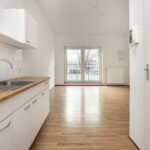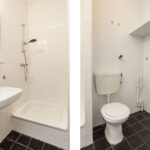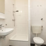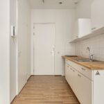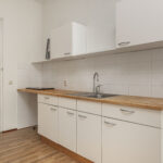 Als je deze studio binnenkomt, vind je aan de ene kant de keurige, open keuken, waar je elektrisch kunt koken (er is geen gasaansluiting). Aan de andere zijde heb je de badkamer met douche, toilet en wastafel. Hier kun je bovendien de wasmachine aansluiten. Aansluitend aan de open keuken heb je de woon/slaapkamer (samen circa 25 vierkante meter) met grote raampartijen die zorgen voor een prettige lichtinval.