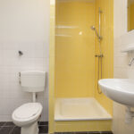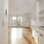 Als je deze studio binnenkomt, vind je aan de ene kant de keurige, open keuken, waar je elektrisch kunt koken (er is geen gasaansluiting). Aan de andere zijde heb je de badkamer met douche, toilet en wastafel. Hier kun je bovendien de wasmachine aansluiten. Aansluitend aan de open keuken heb je de woon/slaapkamer (samen circa 25 vierkante meter) met grote raampartijen die zorgen voor een prettige lichtinval.