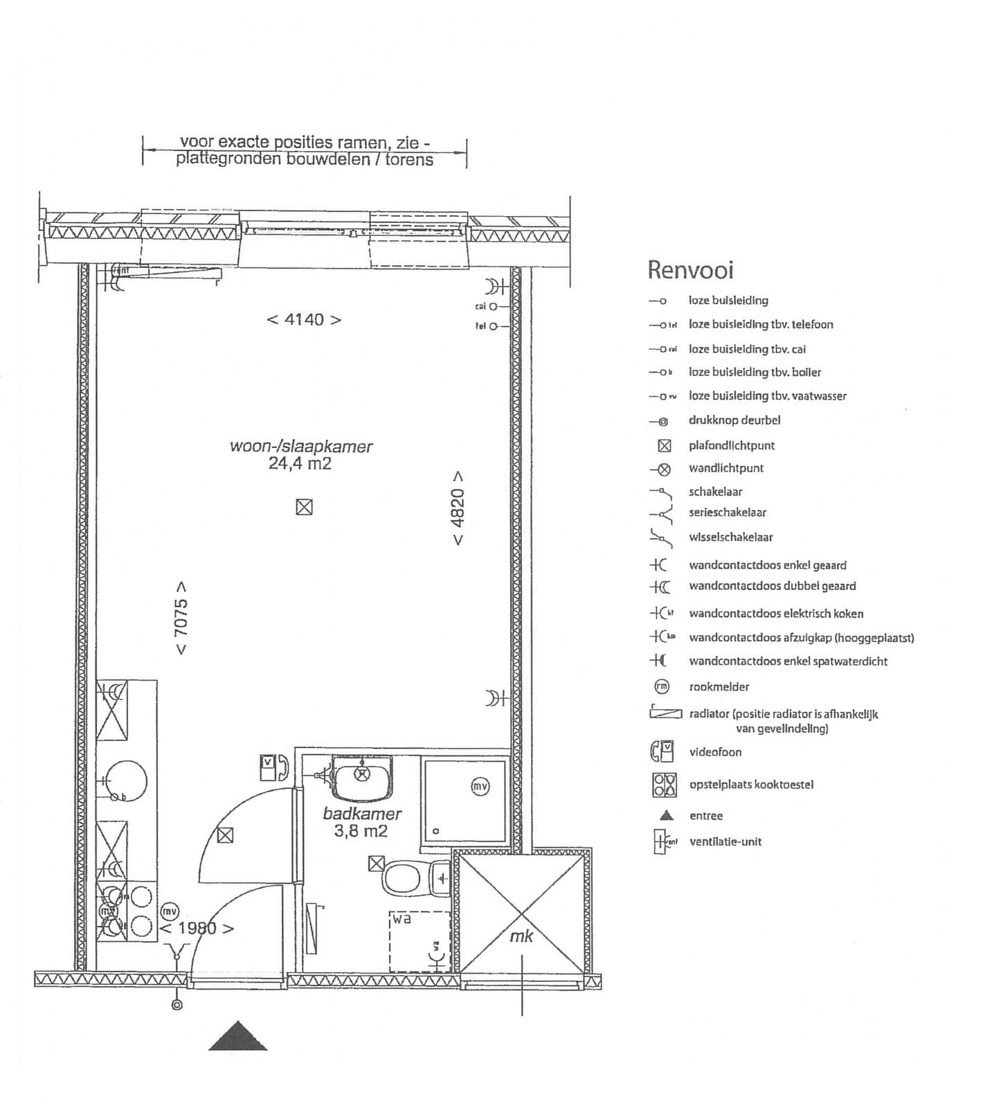Het éénkamerappartement is ca. 28 m² groot en is gelegen op de 4e verdieping met een uitzicht op het zuiden. De woningen zijn voorzien van een keuken met aanrecht, wasbak, onder- en bovenkastjes en badkamer voorzien van douche, toilet, wastafel en een aansluiting voor een