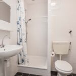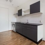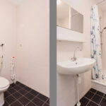 Als je deze studio binnenkomt, vind je aan de ene kant de keurige, open keuken, waar je elektrisch kunt koken (er is geen gasaansluiting). Aan de andere zijde heb je de badkamer met douche, toilet en wastafel. Hier kun je bovendien de wasmachine aansluiten. Aansluitend aan de open keuken heb je de woon/slaapkamer (samen circa 25 vierkante meter) met grote raampartijen die zorgen voor een prettige lichtinval.