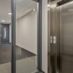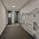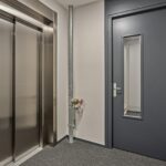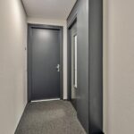 Entree, bellentableau, liftinstallatie en trapopgang, toegang tot de bergingen. Achterdeur naar parkeerterrein.