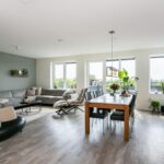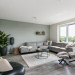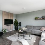 De royale woonkamer voelt direct licht en ruim aan dankzij de grote raampartijen en de glazen deur naar het balkon. Door de ligging op het zuidwesten kan je hier heerlijk genieten van de zon en het uitzicht.