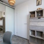 De master bedroom is royaal van formaat en voorzien van een luxe kastenwand met melkglazen schuifpanelen. De tweede slaapkamer is eveneens licht en netjes afgewerkt. De kamer heeft een eigen kastenwand en is geschikt als logeer-, werk- of kinderkamer.